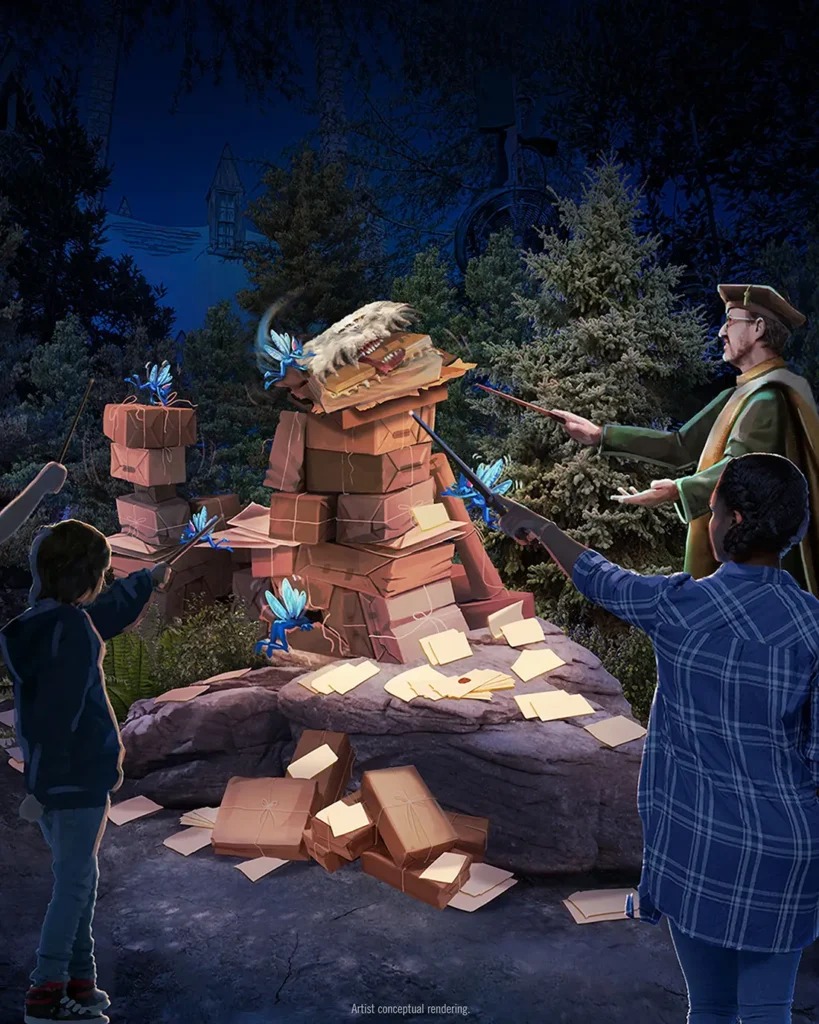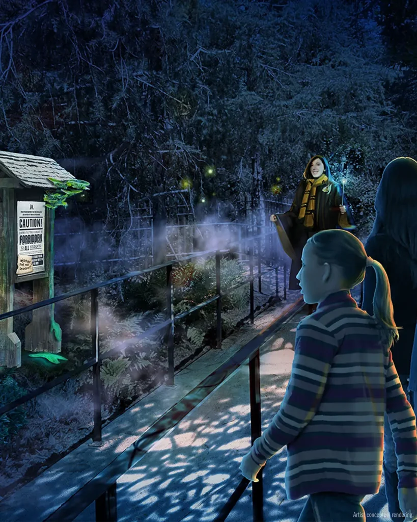 The experience places guests in an all-new outdoor environment created exclusively for the event. Guided by a Hogwarts magical creatures professor, visitors embark on a walk-through adventure encountering creatures ranging from pixies and owls to spiders and the Monster Book of Monsters. Along the way, obstacles challenge guests to summon bravery and spellcasting skills to complete their nighttime rescue mission.